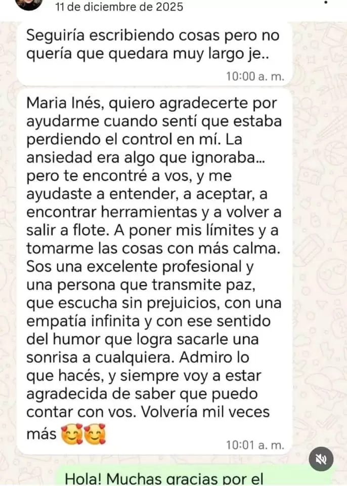 Me dedico a acompañar y brindar herramientas a personas que desean lograr cambios significativos y duraderos en sus vidas. Si has intentado diferentes soluciones sin éxito, estoy aquí para ofrecerte un enfoque personalizado y efectivo. Juntos, podemos trabajar para superar estos desafíos y encontrar la paz que mereces.